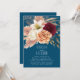 Bjud in dina gäster till en oförglömlig fest med denna rustika blomsterinbjudan till bröllopsfest i teal. Med en fantastisk bukett av rosafärgade, vita och djup burgunderröda blommor och frodig gyllene lövverk på en rik teal bakgrund, utstrålar denna inbjudan elegans och romantik. Perfekt för höst- eller vinterbröllop med en boho-chic känsla, erbjuder den en varm och inbjudande estetik. Anpassa texten efter dina evenemangsuppgifter.