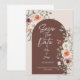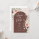 Meddela din stora dag med stil med detta rustika blomsterkortet "Save the Date" med en varm terrakotta-båge, rosa och elfenbensvita rosor och elegant typografi. Perfekt för boho-, trädgårds- eller landsbygdshochs. Fullt redigerbart med dina egna namn, datum och plats.