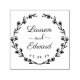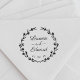 Specialdesignad bröllopsstämpel med modern handkalligrafi och handritad blomsterkrans. Personifiera med brud och brudgummens namn och bröllopsdatum. Perfekt för rustika, lantliga och boho-teman bröllop.