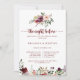 Denna rustika blommiga kväll före repetitionsmiddagsinbjudan är perfekt för ett modernt evenemang. Designen har burgunderröda, rosa och rosafärgade akvarellblommor med gröna blad på en brunaktig bakgrund.