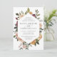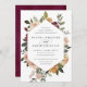 En vacker bröllopsinbjudan för fallande blommigt med namn i kalligrafi-skript med text, kapslad i ett geometriskt gräns av vattenfärgblommor och botaniska ämnen i muterade jordtonsnyanser av burgundisk marsala, , elfenben och sage-grönt. Anpassa med din bröllop-information under.