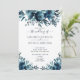 Den här romantiska, rustiska blommigtens kallelse till ett bröllop innehåller en droppe blommigt, med den roliga eleganten, modern inbjudningstext från stil med handskrivet manustypografi. Baksidan av inbjudan innehåller ditt favoritfoto på förlovningen, bakom en marin blå ram och blå blommigt. Inbjudningskort för Elegant av upphovsrätt, alla höger reserverade.
