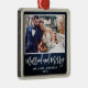 Modern penselskrift, Rustic Blue Wood Married och Merry Bröllop Photo Ornament