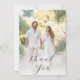 Fira din kärlek med detta rustika boho-två-foto tackkort för bröllopsfest för par! Dessa kort är perfekta för bröllop, fester och alla hjärtliga tillfällen, med en minimalistisk design, elegant kalligrafi och tidlösa svart-vita foton. Enkla, moderna och prisvärda – uttryck din tacksamhet med värme och stil!