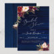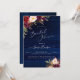 Rustik Boho Bröllopsfest inbjudan, med akvarell blommor Burgundy/ Marsala och Crème Peonies och rustic navy blå träpaneler bakgrund.
