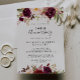 Den här rustika boho blommiga 50-års bröllopsjubileums inbjudan är perfekt för ett modernt evenemang. Designen har rosa, lila, röda och vinröda akvarell peonior grupperade i eleganta buketter med grön lövverk som inspirerar till naturlig skönhet.