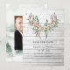 Dammigt brunt rustikt silkesbomullskullar och eukalyptusblad bohemiskt bröllop spara datum med boho-fjädrar och horn.