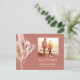 "Boho pampasgräs spara datum postkort – ett stilfullt sätt att tillkännage din speciella dag! Med mjuk akvarell pampasgräs och jordnära neutrala toner är detta postkort perfekt för rustika, bohemiska eller moderna bröllopsteman. Personalisera med era namn, bröllopsdatum och plats och foto. Tryckt på premiumkartong, är det ett vackert och bekvämt sätt att låta gästerna veta att de ska markera sina kalendrar."