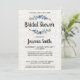 Vackra jeansblå blomstermotiv med djärva bohemiska pilmotiv ger denna design massor av bra energi! Rustik träbakgrund, vitlaserad färg och realistisk akvarellstil ger graciös struktur och charm. Naturlig och fräsch för ett nutida bröllop.