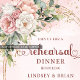 Fira din speciella kväll med stil med denna eleganta inbjudan till middag före bröllopet med roséguldsaccents, dammiga och blush rosa blommor och mjuk eukalyptusgrönska. Designad för tidlös romantik och modern boho-charm, sätter den den perfekta tonen för din bröllopshelg och imponerar på gästerna med raffinerad, oförglömlig skönhet.