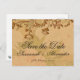 Detta vackra bröllopskort har ett fantastiskt, boho blommigt mönster av bleknade peonior i skördeguld, med ett dekorativt, skinande guldscrollande mönster av damaskuslika blommor och blad längs med toppen.