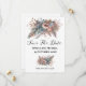 Få dina gäster att bli exalterade över din bröllopsfest med era Rustika Boho Silver och Rosa Blommiga Spara Datum-inbjudningar. Denna chic och moderna Spara Datum-funktion har jordnära Naturliga Nyanser av blues, rosa och silver i akvarell handmålade blommor. Färgerna gör detta bra för sommar- och höstbröllop med Boho eller Bohemian-teman. Få bröllopsinbjudningarna som matchar denna Spara Datum för ett sammanhängande tema.