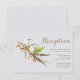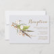 Elegant rustik bröllopsmottagningskort med akvarell bomulls blomsterkrans och fasanfjädrar på en ljusgrå bakgrund. Koordinater med Rustic Cotton bröllopsset.