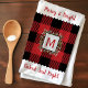 Rustik bondgård jul med buffelmönster och monogram kökshandduk