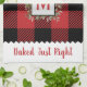 Fira högsäsongen med denna anpassningsbara kökshandduk med ett rustikt rött och svart buffelmönster med inslag av en grön julkrans och en anpassningsbar initial. Två ytterligare anpassningsbara textfält med texten ”Merry and Bright and Baked Just Right” tillför en extra touch av charm i lantrustik stil. Anpassa denna design med din egen text eller lägg till ett namn och initial för att skapa en unik gåva till människor som älskar att laga mat, baka och umgås.