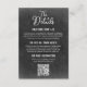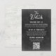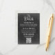 Stiliserad svart tavla layout med QR-kod på framsidan. Elegant ljust väderbiten lada trä på baksidan. Detta mångsidiga kort kan komplettera en mängd olika bröllopsdesign och stilar, men det är särskilt fint för en rustik lantlig gårdsbröllop.