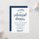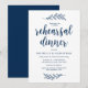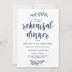 Planerar du en bröllopsrepetition middagsfirande med den blivande Bruden och den blivande Brudgummen, innan deras STORA dag? Inbjudan gästerna med detta Perfekta rustika skript Bröllopsrepetition middagsinbjudningskort. Lägg till din repetitionsmiddags detaljer i matchande teckensnitt / bokstäver. Vitt kort, i Marinblå teckensnitt.