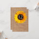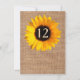 Rustik chic bröllopsmottagning bordskort, gjort i en brun säckväv look, med grafik av en stor vacker gul solros. Anpassa numret för varje bord på din mottagning. Matchande bröllopsprodukter finns tillgängliga.