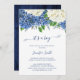 Rustic Botanical hydrangea... Det är en pojkduschinbjudan är ett vackert och elegant sätt att tillkännage din lille ankomst! Den här babyduschen inbjudan har en vattenfärg med blå vattenkastare, blå träbakgrund, vita vattendrag, vilda blommor och grönska.