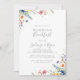 Den här inbjudan till rustik botanisk bröllopsfrukost på ängen är perfekt för ett modernt evenemang. Designen har sömlösa handmålade gula, marina, blå, gula, rosa och skära vilda blommor med botaniska blad.