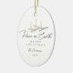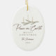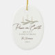 Rustik botanisk fred på Jorden Skript fotokeramisk prydnadsföremål. "Fred på jorden" i ett handskrivet stil-teckensnitt med elegant, med ett rustiskt, handritat, grönt gren med ljus. Anpassa prydnaden med hälsning, namn och år. © Kimbelled, LLC