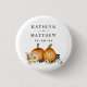 Rustik botanisk höstpumpa höstbröllopsknapp. All text är förarrangerad för att du enkelt och snabbt ska kunna anpassa den med dina egna detaljer.