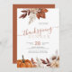 Modern bränd orange terracotta hösten faller blommigt botaniskt och pumpa Thanksgiving för rustik chic Inbjudan till trendiget med ett kalligrafiskt skript för handskrift.
