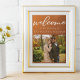 Följ höstens trend med jordnära nyanser med vår brännorange till brun gradient höstbröllop välkomstaffisch. Enkel vit typografi på en rustik affisch med ert par engagemangsfoto för en minimalistisk look. Bohemska nyanser som påminner om terrakotta ler framhäver din eleganta kalligrafi på denna trendiga färgförändrande texturerade dekoration med ert romantiska fotografi.