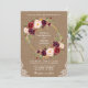 Rustic Burlap Burgundy Marsala Blommigt Wandan Snöre Guld bröllopsinbjudan