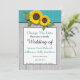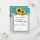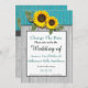 Rustik Teal Trä, Gyllene Solros charmig modern country bröllopsinbjudan, Perfekt för årets bröllop