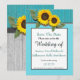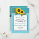 Rustik Teal Trä, Guld Solros charmig modern country Bröllopsinbjudan, Perfekt för årets bröllop