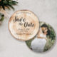 Rustik Bröllopsinbjudan med Foto på Trästruktur - en blandning av naturlig charm och romantisk elegans, perfekt anpassad för ditt rustika bröllopstema. Detta unika runda kort fångar essensen av trästruktur, som efterliknar de rustika träskivor som ofta ses på vackra och romantiska bröllop. *Tryckt trästruktur på papper