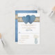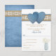 Om du planerar en informell landsbygdbröllop på en utomhuslokal eller lada och vill ha en rustik, avspänd look och känsla på din speciella dag, kan detta mjuka och romantiska bröllopssvarskort vara precis vad du behöver för att knyta ihop ditt tema. Med en mjuk färgpalett av denimblått, vitt och tanbrunt kommer det säkerligen att bli en hit. Designen har en blekblå murarvaska fylld med baby's breath-blommor och ett falskt brunt jute, mellblått denim och vitt spetsband som sveper runt till baksidan, som har en hel baksida av falskt blått denim. Det finns ett par stora blå denimhjärtan på framsidan som ger det en romantisk look. Detta mycket prisvärda bröllopssvarskort har