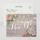 Vintage Vattenfärg Blommor och Eleganta Strängljus på Rustik Trästruktur Bakgrund Bröllop RSVP Svars Kortmallar. En Perfekt Design För Din Stora Dag! All Textstil, Färger, Storlekar Kan Modifieras För Att Passe Dina Behov.