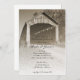 Bjud in gäster för att fira det nygifta brudparet på morgonen efter deras vigsel med den charmiga Rustic Covered Bridge Post Wedding Brunch Inbjudan. Denna anpassade överbryggade efterbröllopsfrukost eller lunchinbjudan presenterar ett pittoreskt, digitalt förbättrat sepiafärgat fotografi av den historiska och väderbitna träkonstruktionen Nevins Covered Bridge byggd över Little Raccoon Creek på CR130 i landsbygden Parke County, Indiana. Perfekt för ett avslappnat men ändå klassiskt trähustema eller ett landligt bröllopstema.