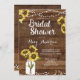 Rustik bröllopsdusch-inbjudan med solros och gammalt rustikt trä.