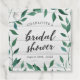 Den här lantliga bröllopsduschens presentkort har italiensk Ruscus med orden "bröllopsdusch" i trendig skrivstil, allt mot en blek träbakgrund. Presentkortet har en mörkgrön baksida.