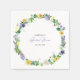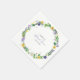 Detta är en rustic vildblomma och grönska tematiskt servett för en bröllopsdusch. Designen har en vacker akvarell botanisk blomsterkrans med en mängd vårens vildblommor, rustika landsbygdsgrönska samt nyckelpigor och fantastiska pastellfärgade trollsländor.