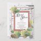 Denna rustika bröllopsfestdesign har en rustik vit Aspen-trädbark bakgrund och höstfärgade löv längs botten och övre vänstra hörnet. Malltexten och ytterkanten är infattade i grönt. Anpassa malldetaljerna, ta bort text eller klicka på anpassa för att välja en typsnittsstil, storlek och färg du föredrar.