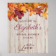 Falla för detta höstinspirerade bröllopsfestskylt. Skylten har en vit rustik trädgårdsbakgrund med färgglada blad i rött, orange och gult.
