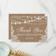 Rustik bröllopsfest med repsträngljus och spets tackkort