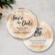 Vi presenterar vår unika "Rustik Trä-Hemsida Bröllop Spara Datum-inbjudan"! Om du letar efter något som verkligen är unikt och vill bryta dig loss från det traditionella förlovningsfotot, har vi den perfekta lösningen för dig. Denna runda kortdesign är inspirerad av den naturliga skönheten hos träskivor som ofta återfinns på rustika eller botaniska bröllop.