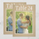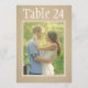 Eleganta anpassade bröllopsbordskort kan anpassas med en förlovningsbild av bruden och brudgummen. Designen har vit text för tabellnummer på en rustik brun kraftpappersbakgrund. För att anpassa: skriv in tabellnumret, klicka på "ändra" bredvid standardbilden för att ladda upp din egen bild och lägg till det enskilda tabellnummerkortet i din varukorg. Upprepa för alla tabellnummer du behöver.