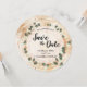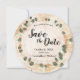 Meddela om din speciella dag med denna rustika träskiva "Spara datum" med en naturlig trädringbakgrund och en delikat eucalyptusgrön krans. Perfekt för ladbröllop, utomhusceremonier, ranchfiranden och höst- eller skogsinspirerade evenemang.