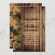 rustik bröllopsinredning med trä och kamouflage inbjudningar