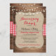 Ändra texten så att den passar din jubileumsfest. Denna rustika trä- och rödkontrollinbjudan är den perfekta kombinationen för en romantisk elegant look. Bakgrundstryck ingår