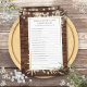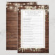 Med vackra strängljus och ömtåliga akvarellgröna blad på en rustik trädrotsbakgrund kan detta roliga bröllopsspel anpassas med egna frågor om vem som känner bruden bäst. Designad av Thisisnotme©