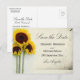 Bröllopssolspark-kort i rustik stil för Save the Date . En ljusgul solros är bakgrunden för detta anpassade bröllopskort för Save the Date.