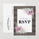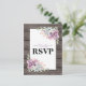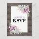 Landlig chic bröllpsvarskort med en rustik trädgårds bakgrund, en suckulent hörn display och en rustik RSVP textmall som är enkel att anpassa.