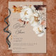 Vi presenterar vår exklusiva bröllopsfest-inbjudan med en neutral, beige bakgrund som perfekt fångar höstens väsen. Det övre högra hörnet är prytt med en fantastisk vattenfärgsspruta med elegant krämfärgade blommor, varma bruna och rostfärgade blad och ömtåliga torkade höstgräs. Denna förtrollande design sätter den perfekta tonen för din höstbröllop, och blandar rustik charm med tidlös elegans. Gör din speciella dag oförglömlig med denna vackert tillverkade inbjudan som talar till hjärtat av säsongen. Skapad av Simply Farmhouse Press.